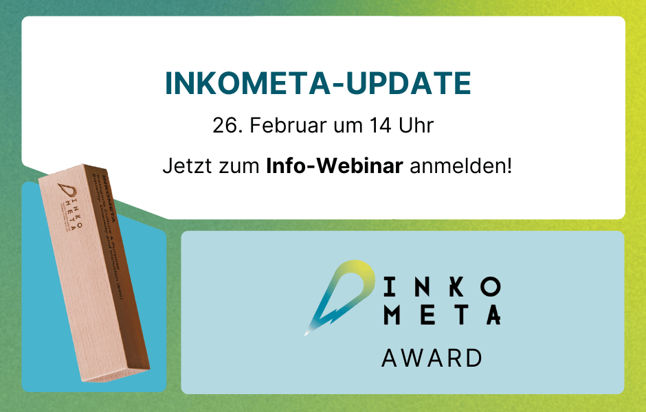 Sie sind sich noch unsicher, ob Ihr Projekt für den INKOMETA geeignet ist? Sie benötigen einen Überblick über die Kategorien und wie sie sich voneinander abgrenzen? Sie fragen sich, was benötigen Sie alles für eine vollständige Einreichung? Sie wollen wissen, wie der konkrete Ablauf bis zur Preisverleihung ist und wann Sie erfahren, ob es Ihr Projekt auf die Shortlist geschafft hat? Egal, ob Sie eine Einreichung planen, noch unsicher sind oder sich bereits im Einreichungsprozess befinden.